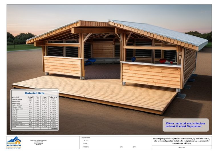 Prisen i materiell listen er hentet fra nettet i april 2024, men jeg tenker at man kan få noe avslag på dette hos en lokal byggevareforretning.